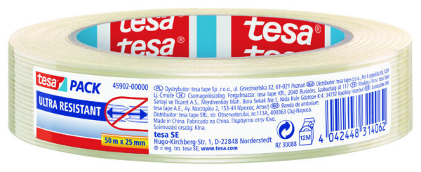 Nastro da imballo trasparente con supporto in PP rinforzato con fibre di vetro monofilamento Eccellente resistenza alla trazione Ideale per imballi pesanti Marca TesaColore TrasparenteMateriale PPLTipologia Nastro adesivoLunghezza nastro 50mtAltezza nastro 25mm