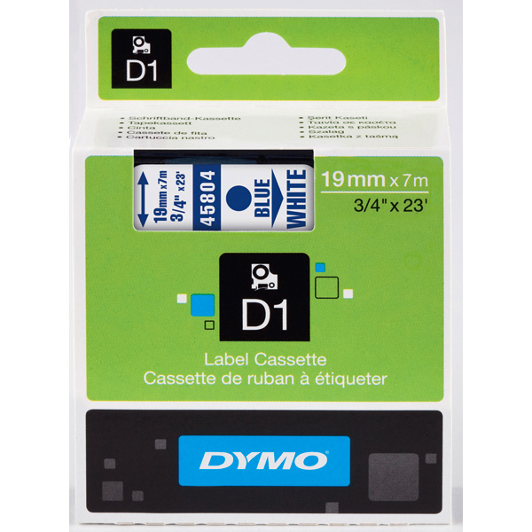 I nastri standard D1 19mmx7m blu/bianco sono stati creati per ottenere le massime prestazioni a qualsiasi livello, rappresentando la soluzione ideale per centinaia di lavori di etichettatura in ufficio, nei negozi, a scuola o in viaggio.