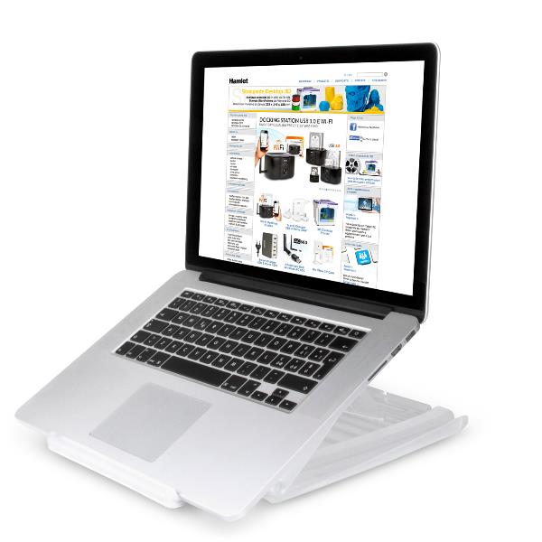I benefici includono una corretta postura sul luogo di lavoro, riduzione dello stress a schiena, collo e polsi, e un miglior processo di raffreddamento del notebook grazie alla struttura aerata.