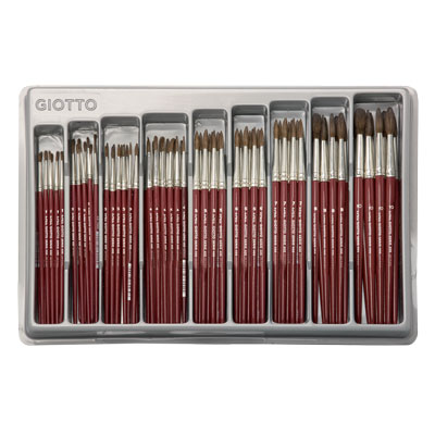 La nostra vetrinetta contiene 228 pennelli a punta tonda con pelo di pura setola e manico in legno, ideali per varie applicazioni di pittura e colore.