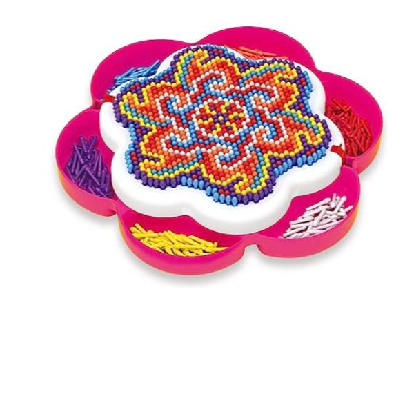 Una grande margherita composta da una tavoletta bucata e da un contenitore dei chiodini a scomparti per comporre infiniti mandala multicolori il contenitore ha una parte centrale per disporre i chiodini alla rinfusa e degli scomparti laterali per ciascuno dei 6 colori cosi 39 daaverli sempre comodamente a disposizione durante la composizione fare mandala con i chiodini grazie alle 6 schede da forare sara 39 alla portata di tutti ed il divertimento e 39 assicurato per tante ore di gioco inoltre e 39 un 39 attivita 39 che ha la capacita 39 di rilassare la mente favorire la concentrazione e stimolare la sensibilita 39 cromatica dei bambini