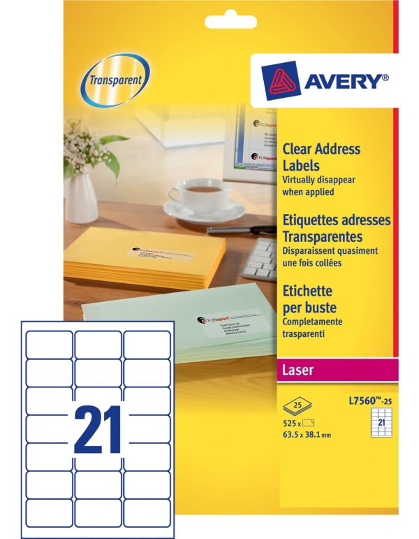 Poliestere Adesivo L7560 Trasparente 25fg A4 63 5×38 1mm 21et Fg Laser Avery L7560 25 5014702177767