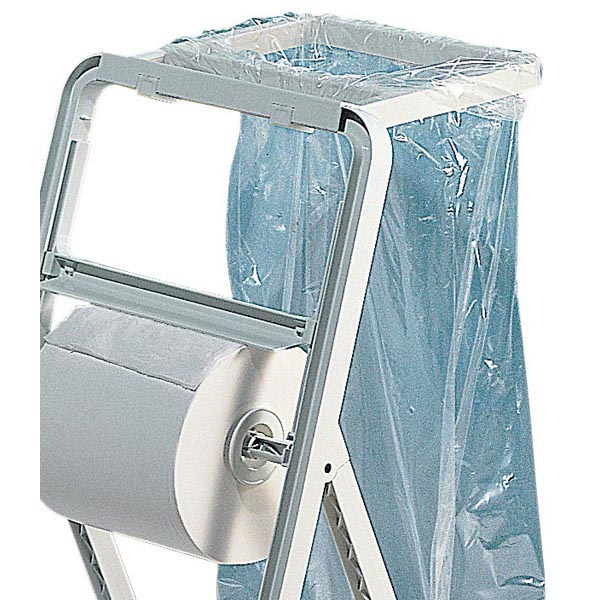 Il Portasacco per dispenser a cavalletto in ABS, dimensioni 4,2×35,6×40 cm, colore biano, marchio Mar Plast, ideale per il bagno, da inserire nel carrello portabobine con ruote.