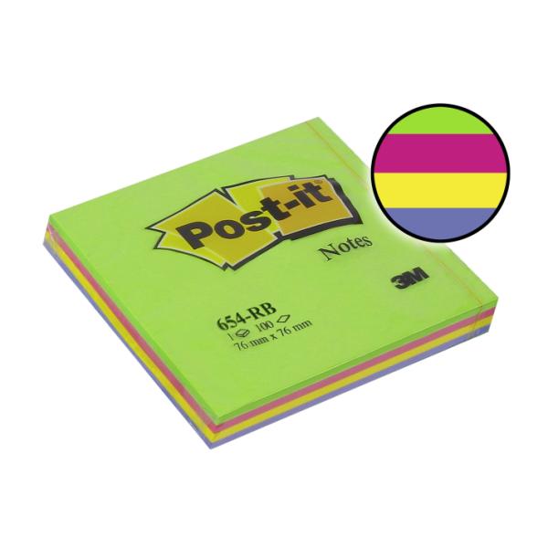Blocchetti post it rainbow 654 rb vivace 76×76 mm fg 100 colori verde ultra fucsia giallo neon blu oltremare conf 12 pz