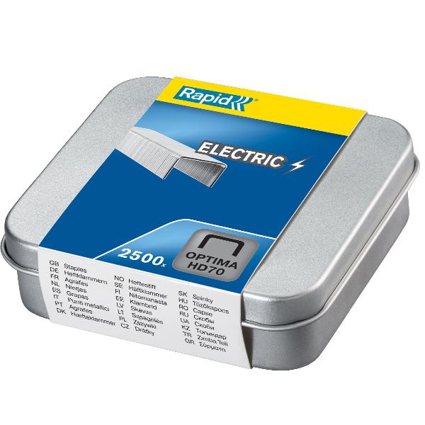 I punti Optima HD70 sono stati progettati per essere utilizzati con le cucitrici elettriche Rapid Optima 45 e Optima 70, garantendo una cucitura senza problemi. Ogni scatola contiene 2500 punti ed è realizzata in con un coperchio sicuro, assicurando una lunga durata e facilità di conservazione.