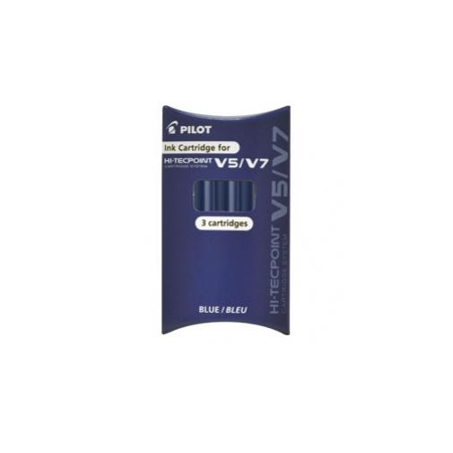 Refill inchiostro per penna HI-Tecpoint V5/V7 in confezione da 3 pezzi, colore blu, tratto di 0.7 mm e peso di 8 grammi, ideale come ricarica per il tuo stiloforo.