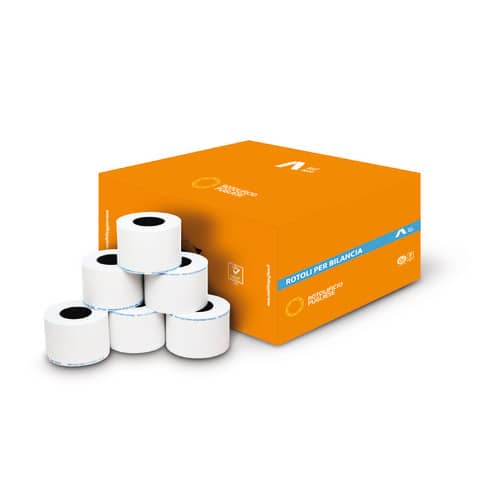 Acquista i rotoli bilancia termici adesivi realizzati con carta termica BPA Free, frontalino termosensibile e supporti adesivi permanenti di qualità, grammatura 110 g/m2, formato 60 mm x 38 m e diametro anima 25 mm, confezionati in termoretraibile da 4 rotoli.
