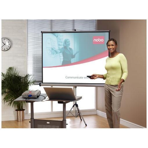 Inoltre, con i supporti estensibili opzionali, lo schermo può essere montato sopra una lavagna bianca o orientato verso il pubblico per una proiezione ottimale.