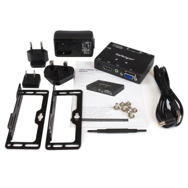 Il Switch Commutatore 2×1 VGA + HDMI è uno switch automatico che consente di collegare due diverse sorgenti A/V, una VGA e una HDMI, allo stesso monitor o proiettore VGA, e commutare in modalità automatica o manuale tra le sorgenti video visualizzate. Questo switch multi-ingresso supporta risoluzioni video fino a 1920×1200 (1080p) e comprende l`hardware di montaggio per un`installazione ordinata e professionale.