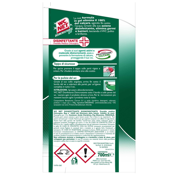 Con la sua confezione da 700 ml, il Detergente WC Net Gel Disincrostante Disinfettante è ideale per uso domestico e professionale, rappresentando una soluzione efficiente e pratica per mantenere i servizi igienici puliti e sanificati.