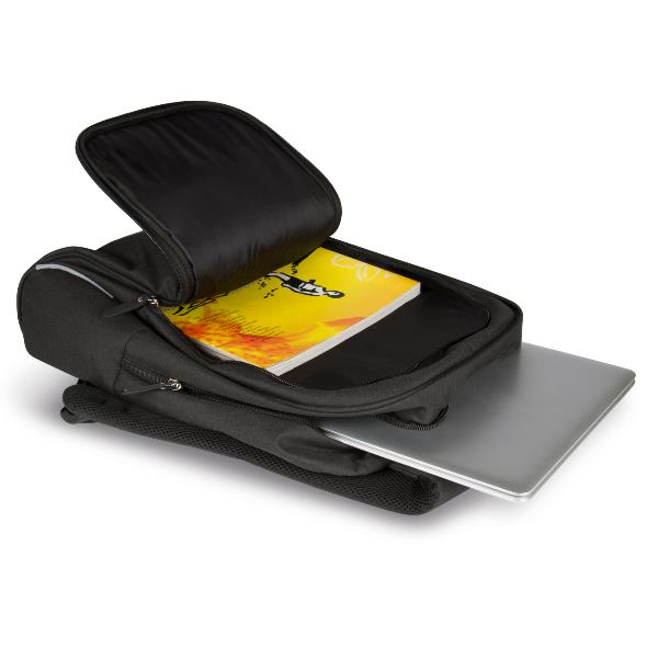 I suoi 4 scomparti interni, accessibili attraverso 3 aperture con zip, consentono di organizzare in modo efficiente il notebook, gli accessori e i documenti. Le tasche separate sono ideali per riporre oggetti di piccole dimensioni, mentre gli spallacci regolabili imbottiti garantiscono un massimo comfort durante il trasporto.